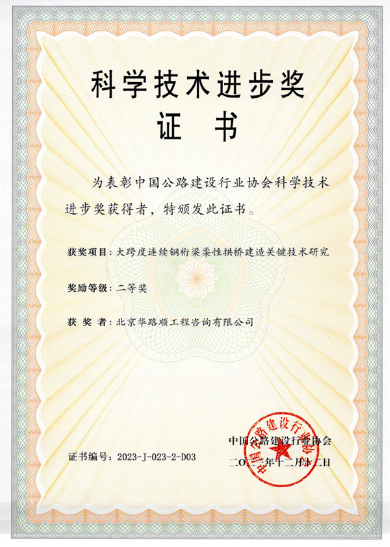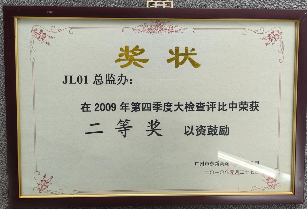 湛江市房屋市政工程安全生產文明施工示范工地證書 中國公路建設行業協會科學技術進步三等獎 中國公路建設行業協會科學技術進步二等獎 西商高速公路第五駐地辦2010年度優秀總監辦 JL01總監辦二等獎 湖南永藍高速公路工程2012年度先進監理單位 湖南永藍高速公路2011年度先進監理單位 廣西桂三高速公路2013年度先進監理單位